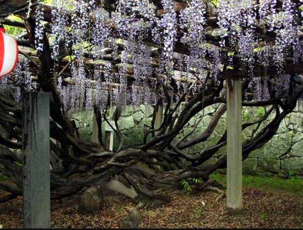 10年以上前からある藤の花の写真です。左の柱に顔らしきなにかが覗いてるように見えます。この画像の詳細を知りたいです。